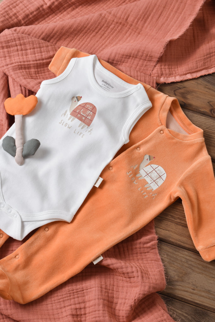 The Little Explorer Turtle Set is made for tiny adventurers who need warmth, softness, and a touch of playful spirit. This 2-piece bundle includes a coral velvet footed romper with an embroidered turtle motif and a coordinating sleeveless bodysuit. The velvet blend of organic cotton and polyester provides gentle warmth without being heavy, while the footed design ensures baby's toes stay snug. Designed with both practicality and charm, it's an ideal choice for everyday wear, photo-worthy outfits, or thoughtful gifting.